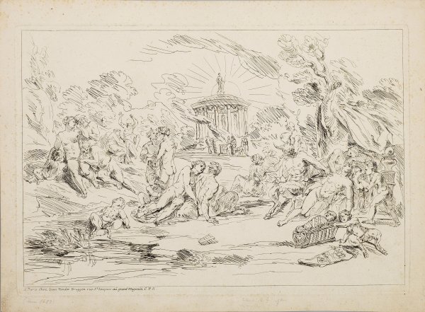 Radierung/Bütten (Wasserzeichen), 1689. In der Platte auf einer Banderole bez. sowie mit typografischem Vermerk. Nach einer Vorlage von Raymond Lafage (1656 - 1707). Erschienen bei van der Bruggen in Paris. Ger. stockfleckig. Platte 31,8 cm x 46,7 cm. Blatt 37,1 cm x 50,5 cm.