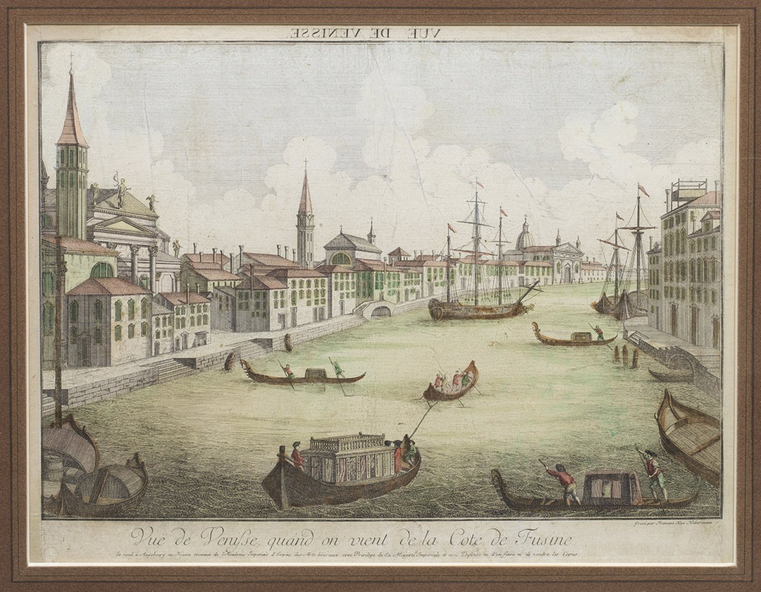Two copper engraved views of Venice by Franz Xaver Habermann (1721-1796), published by the academy in Augsburg circa 1780. Minor repairs and damages.