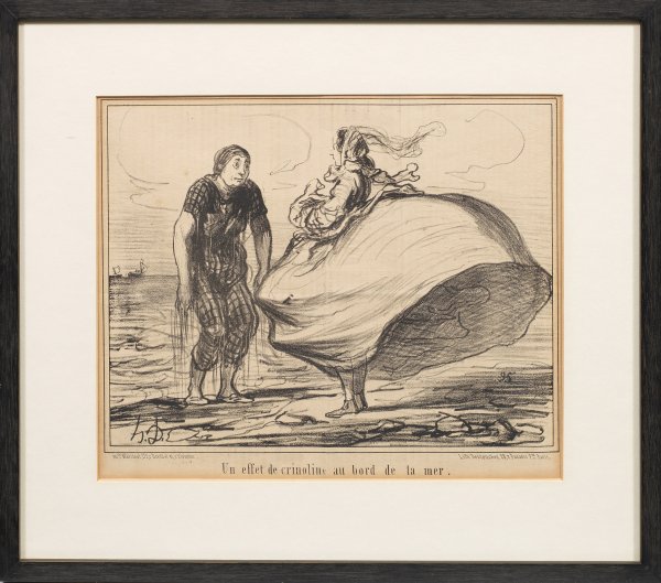 Lithographie/Papier, 1857. Aus "Actualités", erschienen in "Le Charivari". Druck bei Destouches in Paris. Typografisch bez.; Gebräunt. Motiv 21,2 cm x 27,5 cm. Rahmenausschnitt 23 cm x 28 cm. Rahmen.