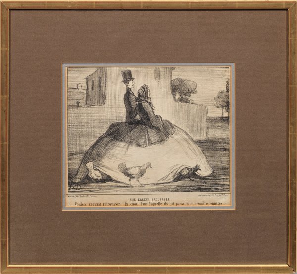 Lithographie/Papier, 1857. Aus "Actualités", erschienen in "Le Charivari". Druck bei Destouches in Paris. Typografisch bez.; Darstellung 22,5 cm x 26,5 cm (Passepartoutausschnitt). Rahmen.
