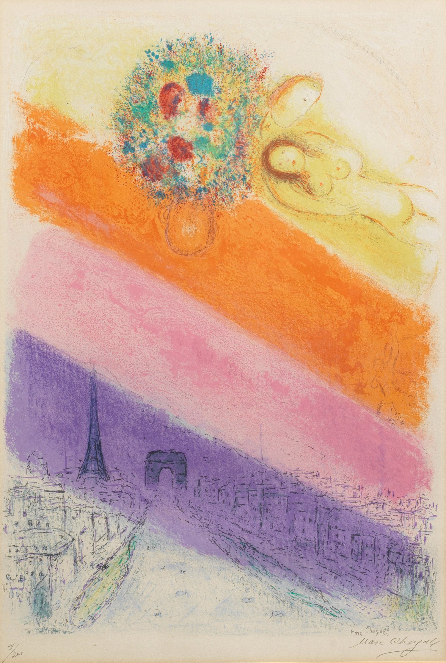 Farblithografie/Velin von Arches (Wasserzeichen). R. u. sign.; L. u. nummeriert 91/200. Erschienen bei Éditions Maeght, Paris. Gedruckt bei Charles Sorlier. Das Motiv wurde auch für ein Plakat einer Ausstellung der Werke Chagalls in der Galerie Aimé Maeght Paris verwendet. Wvz. Mourlot CS 6. Darstellung 60 cm x 42 cm. Blatt 66 cm x 45,5 cm.
