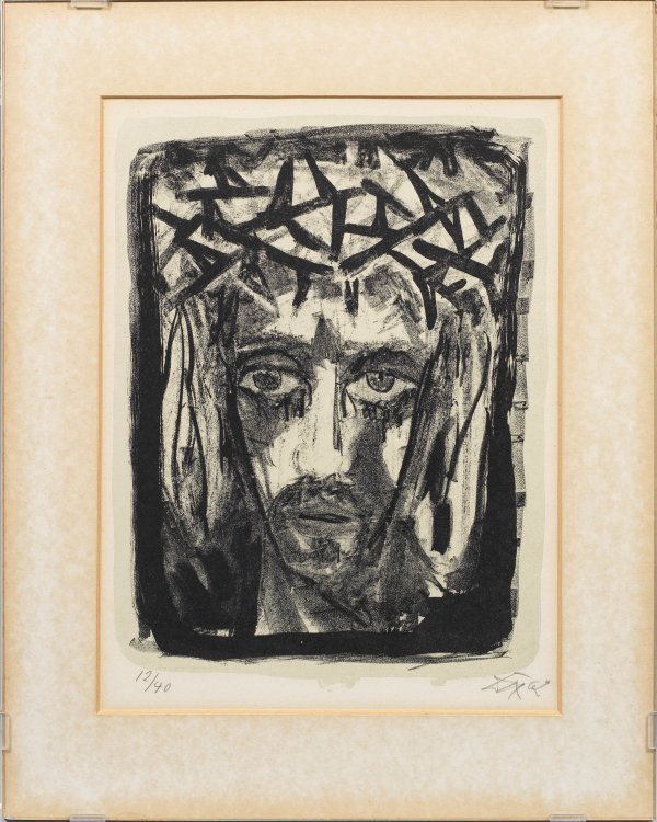 Farblithographie/Velin, 1962. R. u. sign. u. dat.; L. u. nummeriert 12/40. Wvz. Karsch 289. Lichtrandig, gebräunt. Darstellung ca. 40 cm x 31 cm. Passepartoutausschnitt 42,5 cm x 32,5 cm. Rahmen.