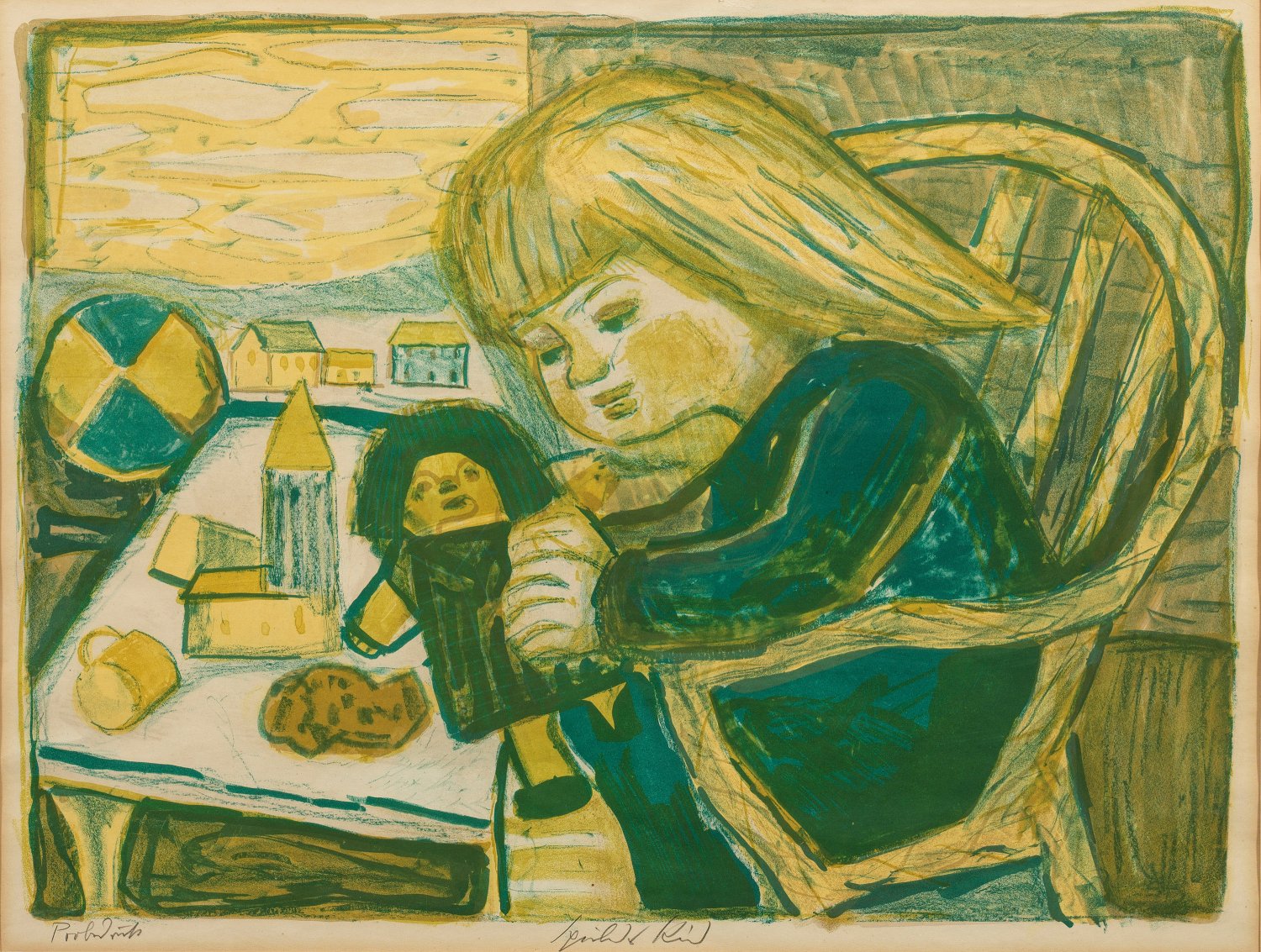 Farblithographie/Papier, 1955. L. u. bez. "Probedruck", erschienen außerhalb der Auflage von 50 nummerierten Exemplaren. Mittig u. betitelt. Wvz. Karsch 214. Nachgedunkelt und gebräunt. Darstellung 49 cm x 66 cm. Blatt 60 cm x 75,5 cm. Rahmen.