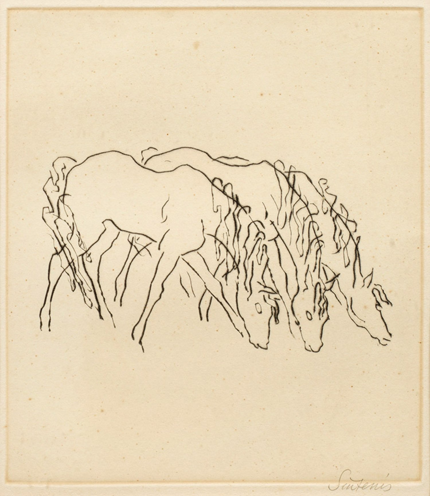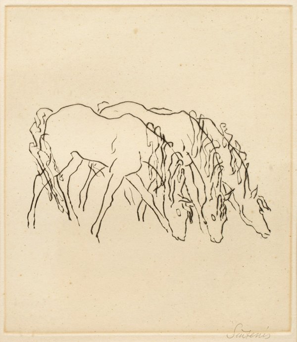 Einfühlsam beobachtete Tierdarstellung der Künstlerin, die als passionierte Reiterin eine besondere Vorliebe für Pferde besaß.