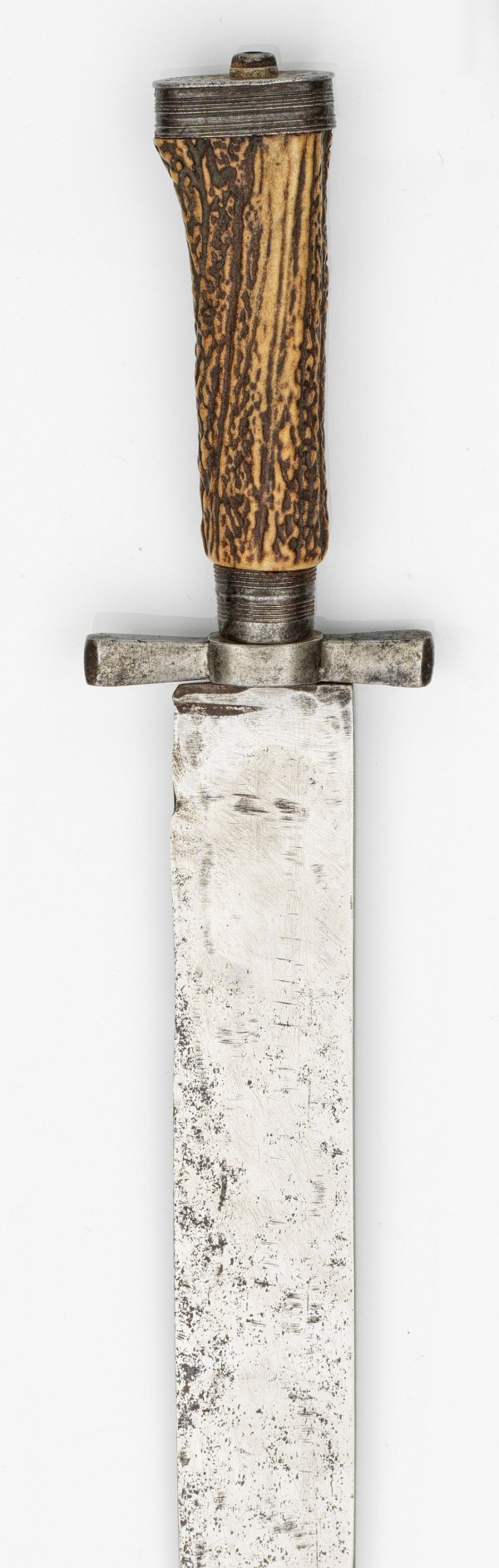 Eiserne Rückenklinge. Gerade, sich konisch erweiternde Parierstange, übergehend in Hirschhorngriff. Klinge mit Schmiedezeichen "KEIL". L. 41 cm.