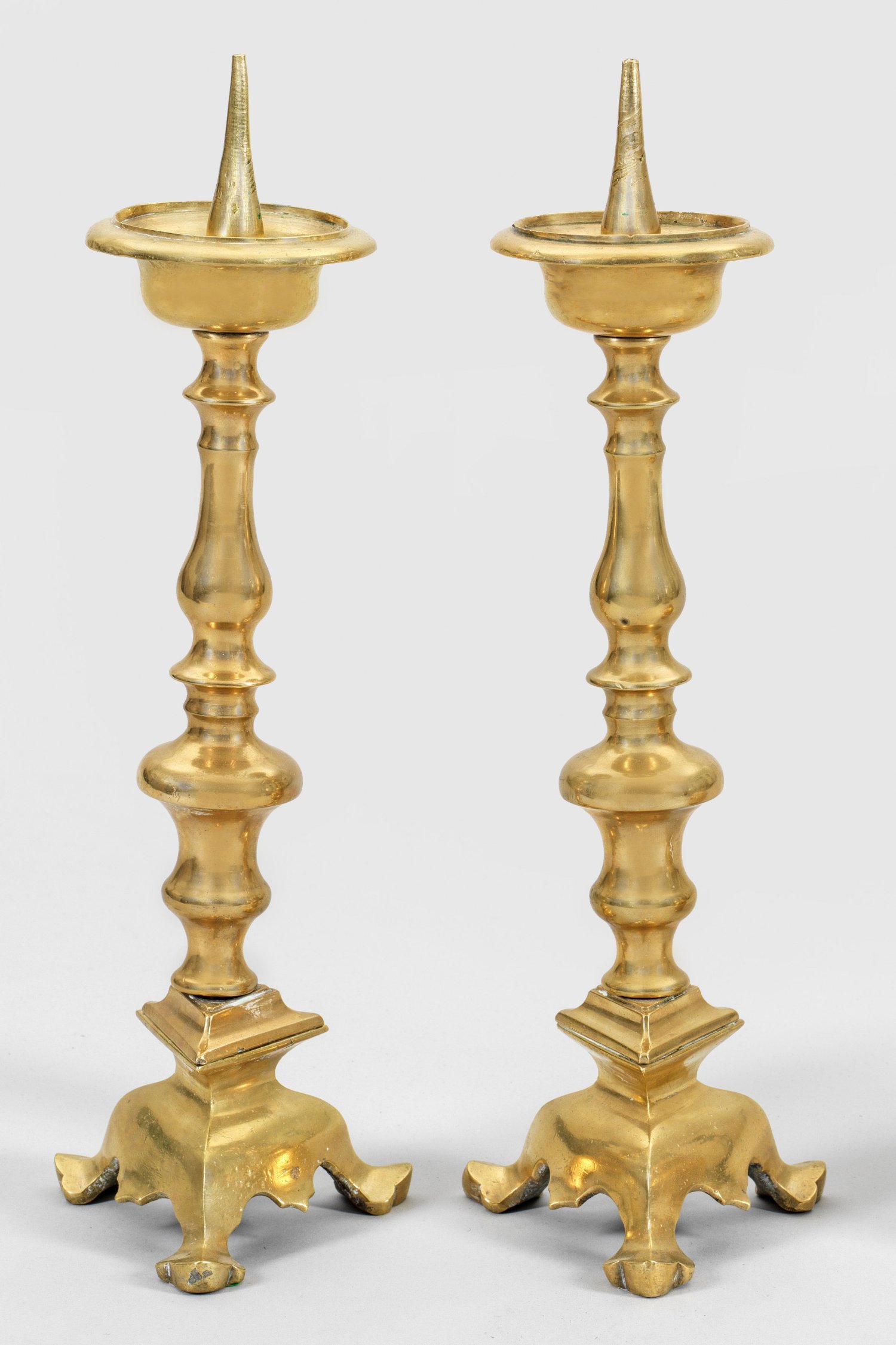 A pair of probably Nuremberg Baroque brass candlesticks. Minor age-related signs of use.