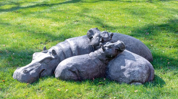 Contemporary animal sculptor active 20th/21st C.; A large patinated bronze group of hippos as fountain figure.