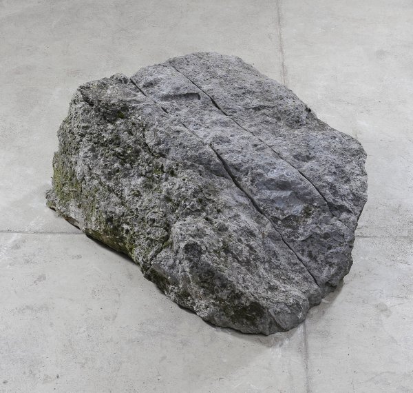 Aachener Blaustein, gesägt, 1968. Frühe Arbeit Rückriems, bei der er einen großen, kissenartigen Steinblock durch Zersägen in drei Teile zerlegte und bis auf schmale Schnittfugen wieder aneinanderfügte. Mit minimalistischen, konzeptuellen Steinskulpturen wie der vorliegenden, wurde Rückriem seit 1968 zu einem der international bedeutendsten deutschen Bildhauer der Gegenwart. Rückriem absolvierte 1957 - 1959 eine Steinmetzlehre in Düren, arbeitete danach an der Dombauhütte in Köln und studierte an den Kölner Werkschulen bei Ludwig Gies. 1963 ließ sich Rückriem zunächst in Nörvenich bei Düren nieder. Ab 1968 gestaltete er erste formal reduzierte Steinskulpturen. Sichtbarkeit des Arbeitsprozesses und Materialität der Steine, die er durch Verdopplung, Teilung, Reduzierung und leichte Veränderung modifizierte, wurden zum Thema seiner Kunst. Charakteristisch sind Steinblöcke - oft Kuben oder Quader, deren Teile er anschließend wieder zusammensetzt oder frei miteinander komponiert. 1969 verlegte Rückriem seinen Wohnsitz nach Mönchengladbach, wo er mit Blinky Palermo ein gemeinsames Atelier bezog. In den Folgejahren wurde Rückriem in wichtigen Ausstellungen große Beachtung zuteil. Zwischen 1972 und 1992 war Rückriem auf allen documenta-Ausstellungen (5-9) in Kassel vertreten; 1978 nahm er mit vier gespaltenen Dolomitsteinen an der Biennale von Venedig teil. 1994 wurden in Rommerskirchen-Sinsteden die Skulpturen-Hallen Ulrich Rückriem eröffnet, 2003 widmete ihm die Neue Nationalgalerie in Berlin eine große Einzelausstellung. 1974 wurde Rückriem Professor an der Hochschule für bildende Künste Hamburg, 1984 an der Kunstakademie Düsseldorf und 1988 an der Städelschule (Hochschule für Bildende Künste) in Frankfurt am Main. 45 cm x 120 cm x 150 cm.