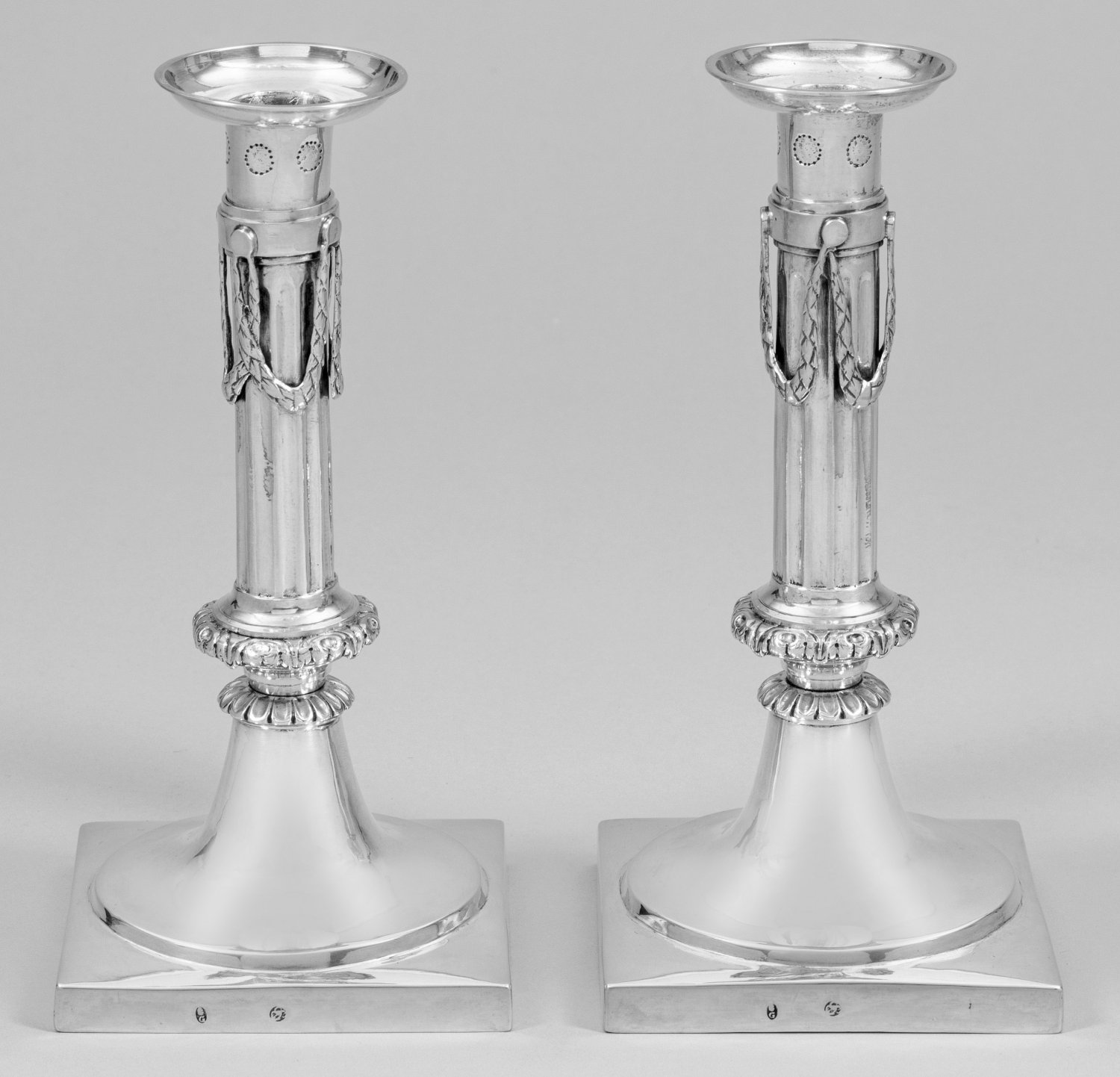 A pair of German Neoclassical silver candlesticks by Johann Gottlieb Biller (master since 1783). Assay and master´s mark.