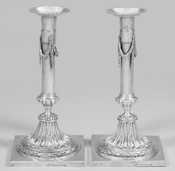 A rare pair of small Nuremberg Neoclassical silver candlesticks by Johann Friedrich Wilhelm Kramer (master since 1781). Test, assay, assay master´s and master´s mark.