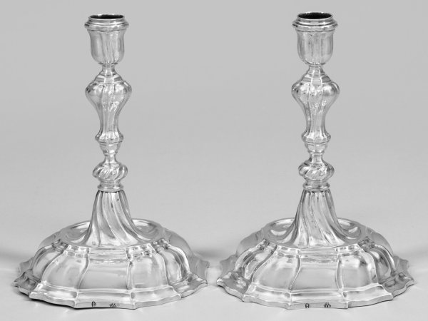 A pair of German Baroque silver candlesticks by Johann (Hans) Jakob V Baur (master since 1743). Assay and master´s mark.