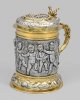A rare German Baroque parcel-gilt silver tankard with figural scenes and ancient greek inscription by Hanß Lambrecht III (master since 1630). Gilt inside. Several test marks. Assay and master´s mark. Tax mark for Moscow, Russia.