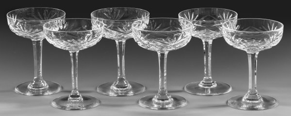 A set of six French Saint-Louis "Chantilly" champagne glasses. Two glasses with acid factory mark.
