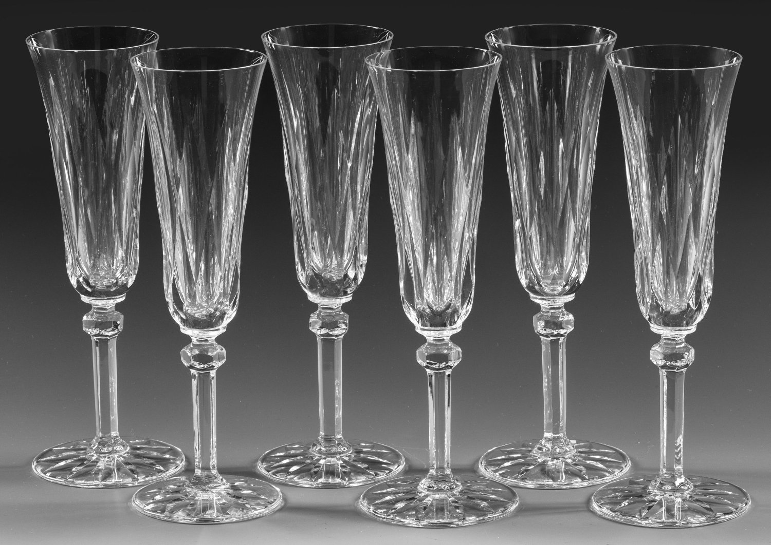 A set of six French Saint-Louis "Provence" champagne flutes. Each with acid factory mark.