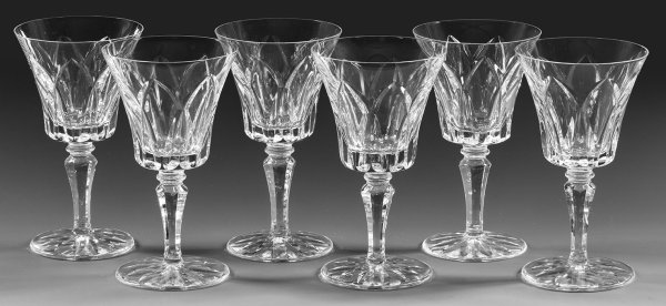A set of six French Saint-Louis "Cerdagne" white wine glasses.
