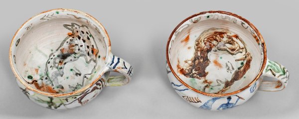 Lot 393: Zwei Unikat-Teetassen mit Malereidekor von Cornelia Schleime