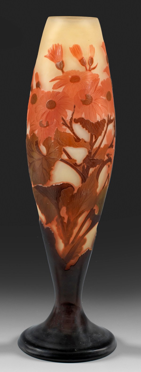 A large French Art Nouveau cameo glass vase with acid-etched Chrysanthemums decor by Emile Gallé.