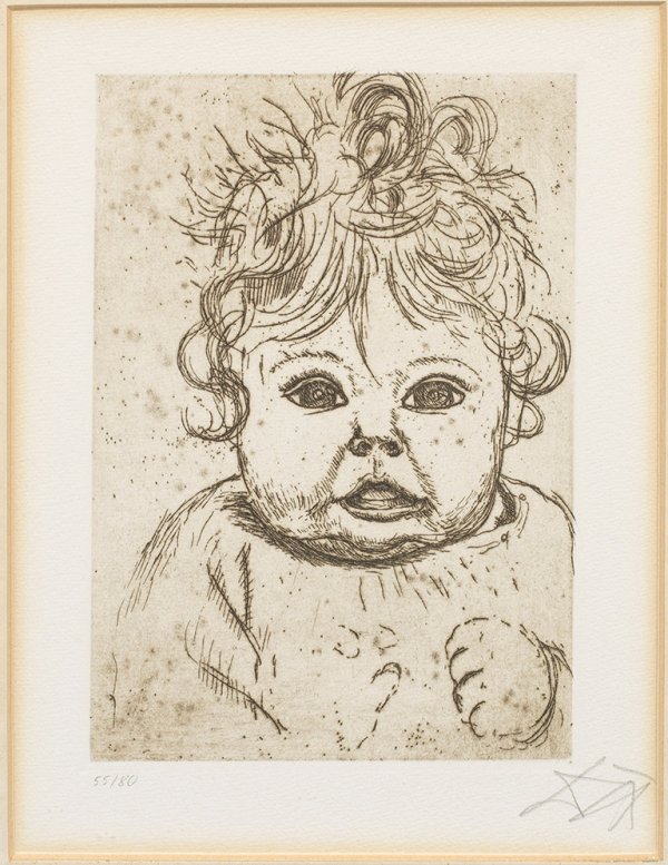 Radierung/Bütten, 1923/24 bzw. 1968. R. u. sign.; L. u. nummeriert 55/80 (von fremder Hand). Eines von insgesamt 100 (80 + 20) Exemplaren als Beilage für die Vorzugsausgabe von "Otto Dix. Das Graphische Werk", Fackelträger-Verlag, Hannover 1968. Wvz. Karsch 122. Platte ca. 19,5 cm x 14 cm. Blatt 25 cm x 20,9 cm. Rahmen.