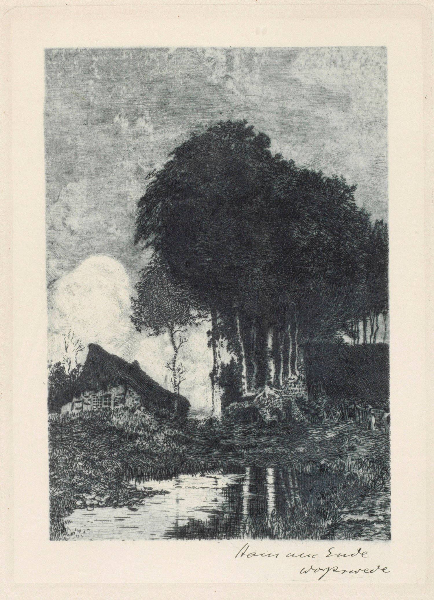 Etching and aquatint on paper. Hand-signed and inscribed with location Worpswede.