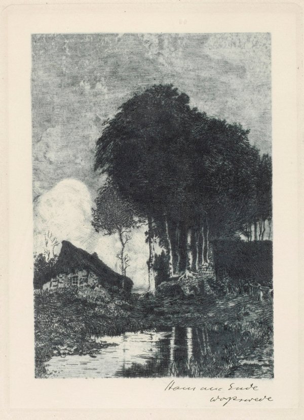 Radierung u. Aquatinta/Bütten, um 1895. R. u. sign. u. mit Ortsangabe Worpswede; Plattenmaß 23,8 cm x 17,5 cm. Darstellung 19,9 cm x 13,9 cm. Rahmen.
