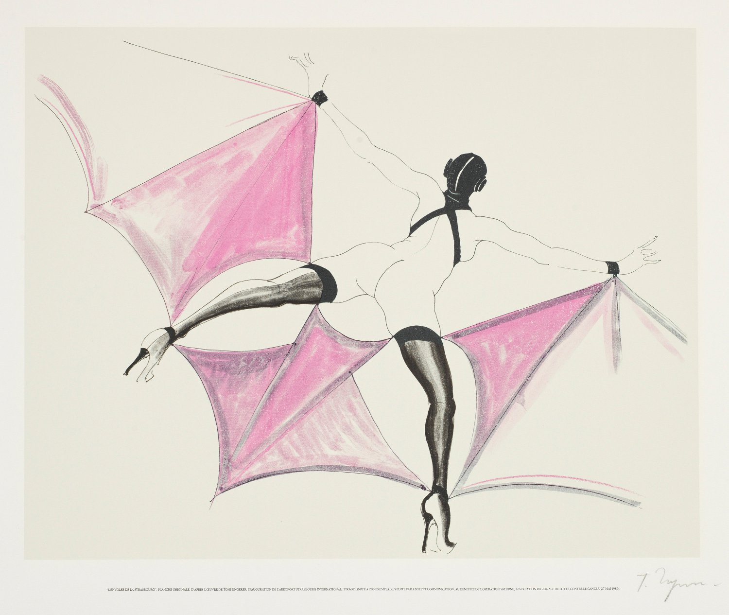 Farbserigraphie/Velin, 1989. Sign.; Herausgegeben in einer limitierten, unnummerierten Auflage von 200 Expl. mit dem erotischen Motiv eines fliegenden weiblichen Aktes. Blatt ca. 63,5 cm x 90,5 cm.