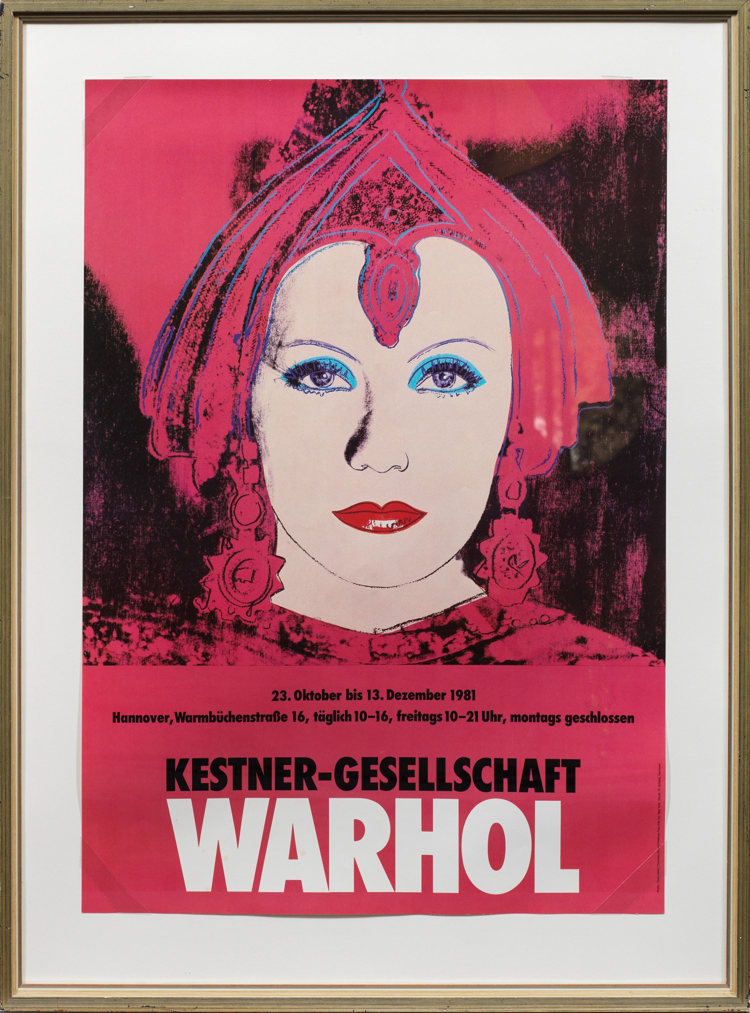 Farboffset-Plakat mit Porträt von Getra Garbo als Mata Hari anlässlich der Warhol-Ausstellung in der Kestner Gesellschaft, Hannover, 1981. Blatt ca. 84 cm x 59 cm. Rahmen.