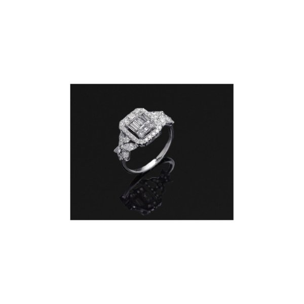 Weißgold, gest. 750. Schauseitig ausgefasst mit Brillanten und Diamanten im Baguette- und Emerald Square-Cut von zus. ca. 1,15 ct. (G-H/vs). Gew. ca. 3,66 g.