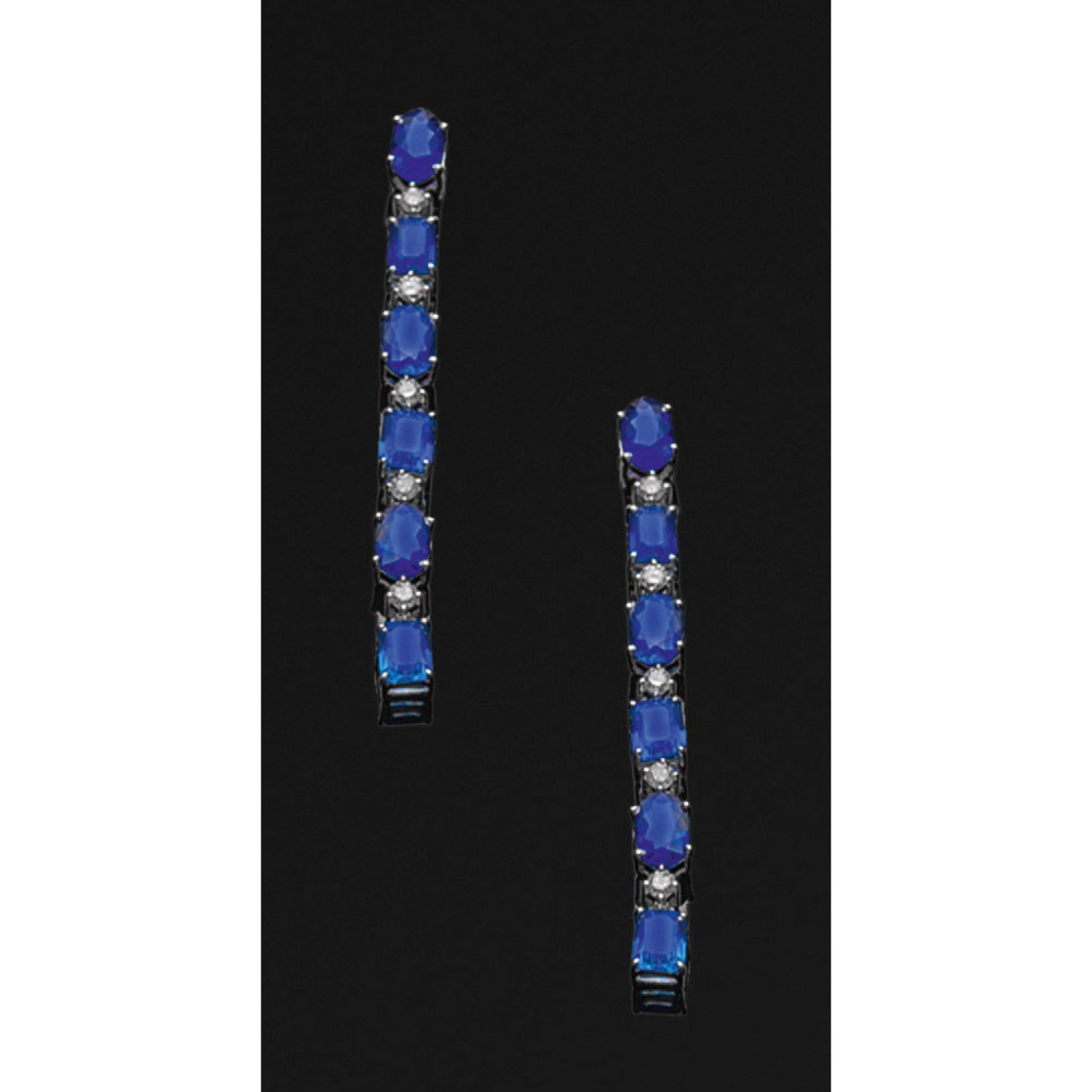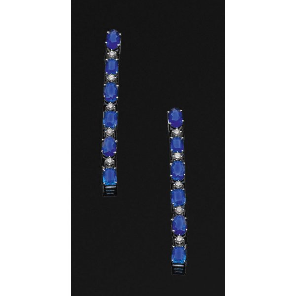 Pair of earrings set with nearly cornflower blue sapphires approx. 7,10 ct. and brilliants approx. 0,42 ct., in 18 k white gold.