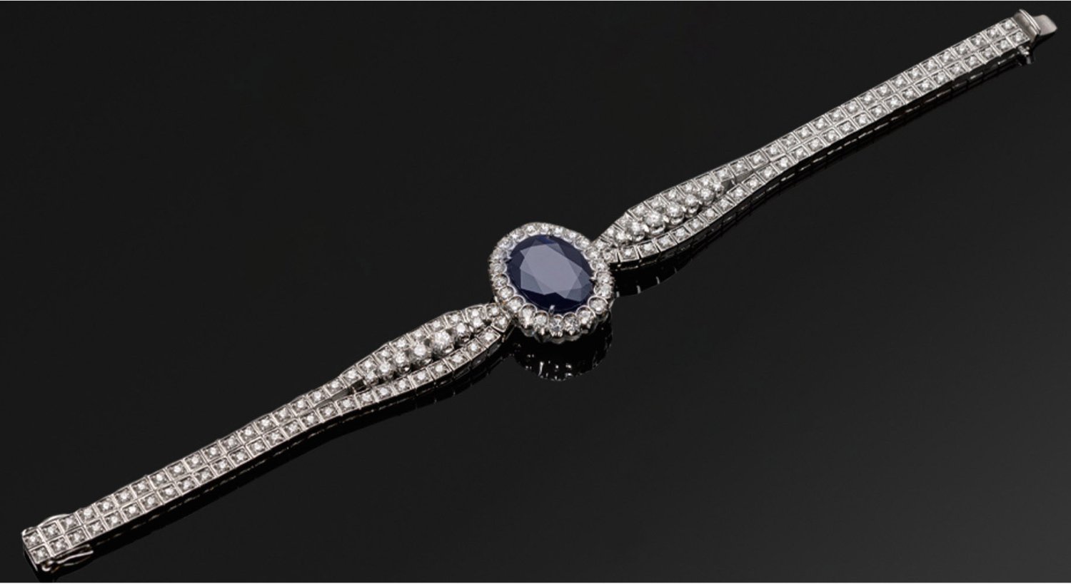 Bracelet set with a sapphire approx. 7,50 ct. and diamonds approx. 3,90 ct., in 18 k white gold.