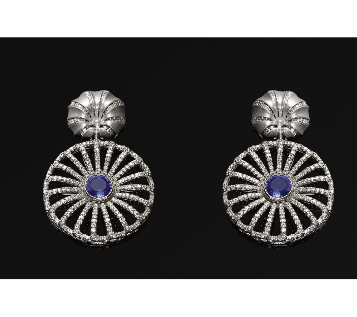 Pair of earrings set with 2 tanzanites approx. 2,71 ct. and brilliants approx. 3,85 ct., in 18 k white gold.