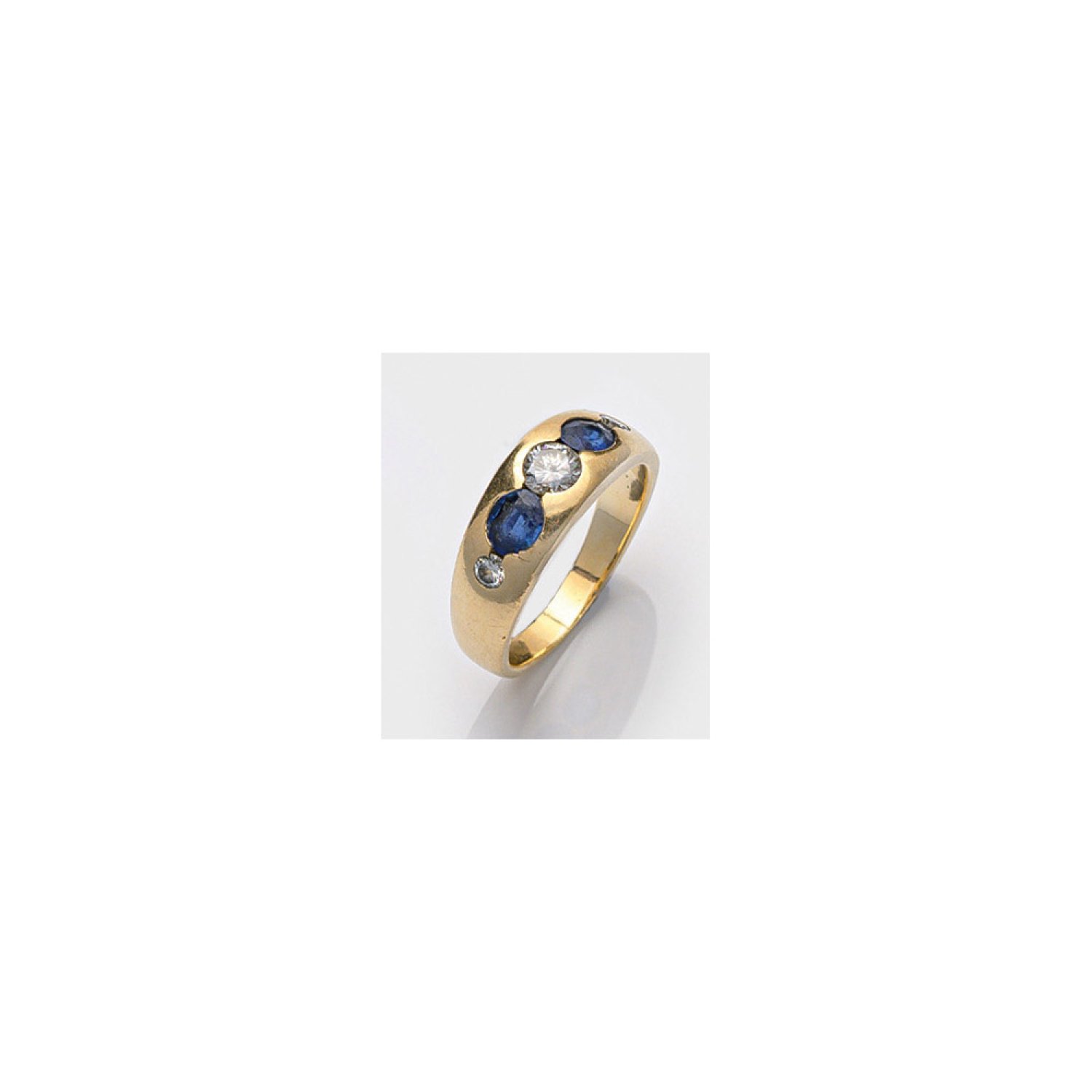 Ring set with diamonds approx. 0,45 ct. and sapphires approx. 0,50 ct., in 14 k gold. Minor signs of wear.