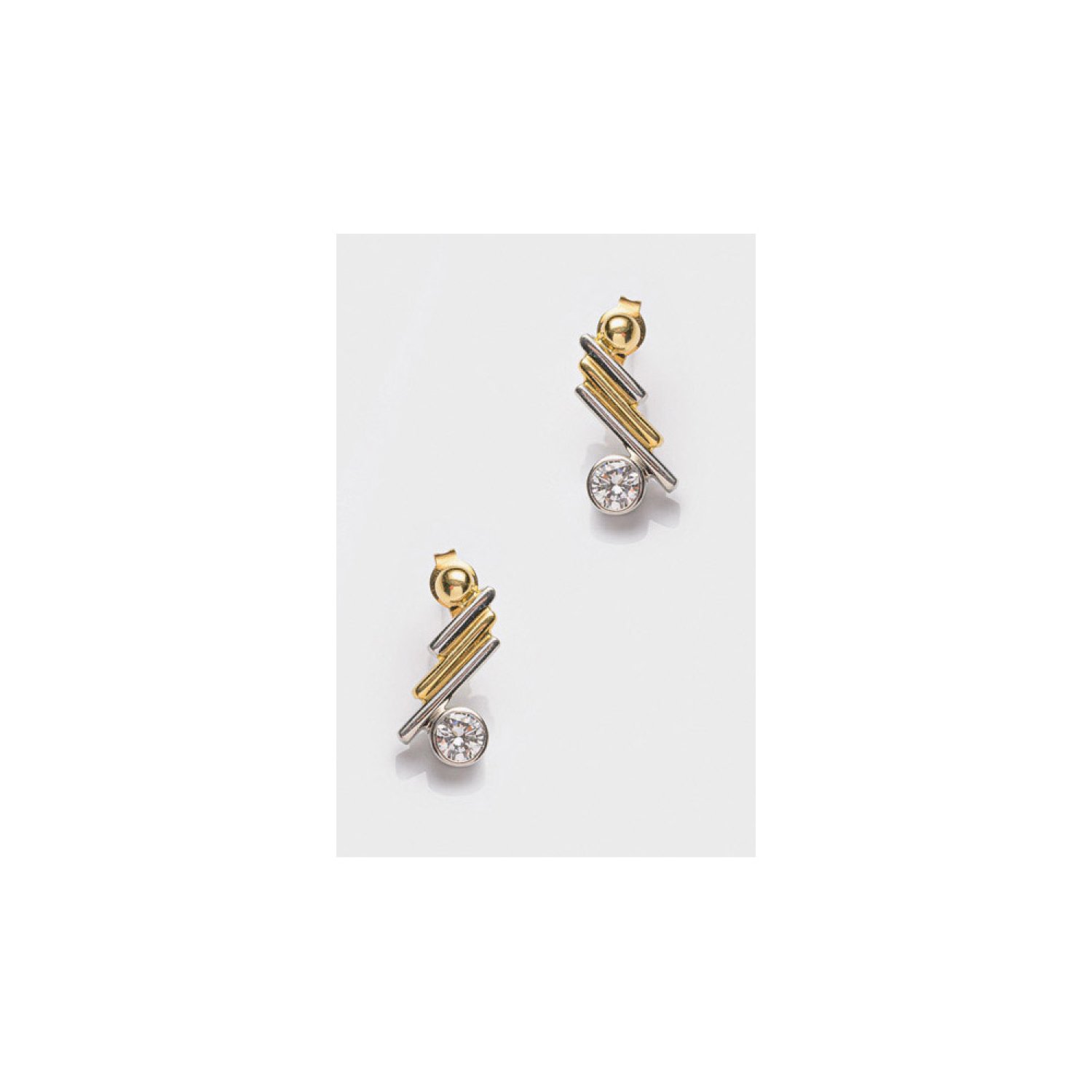 Platin und Gelbgold, gest. 900/18 ct.; Besetzt mit 2 Brillanten von zus. ca. 0,50 ct. (F-G/vs). Ges.-Gew. ca. 2,22 g.