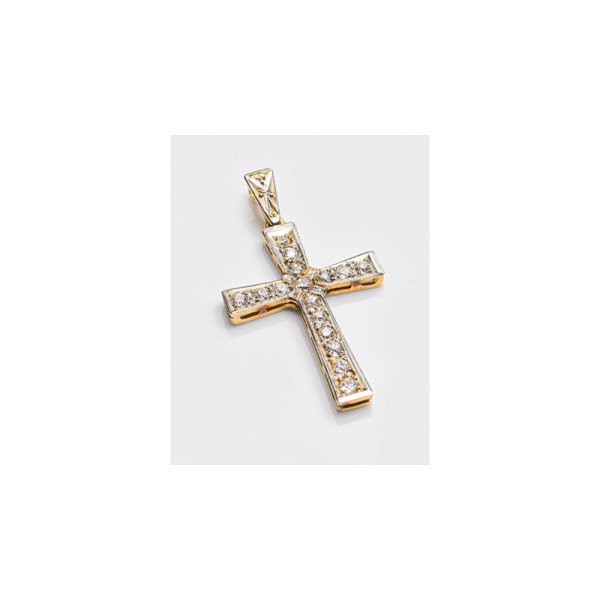 Cross pendant set with diamonds approx. 0,50 ct., in 18 k gold.