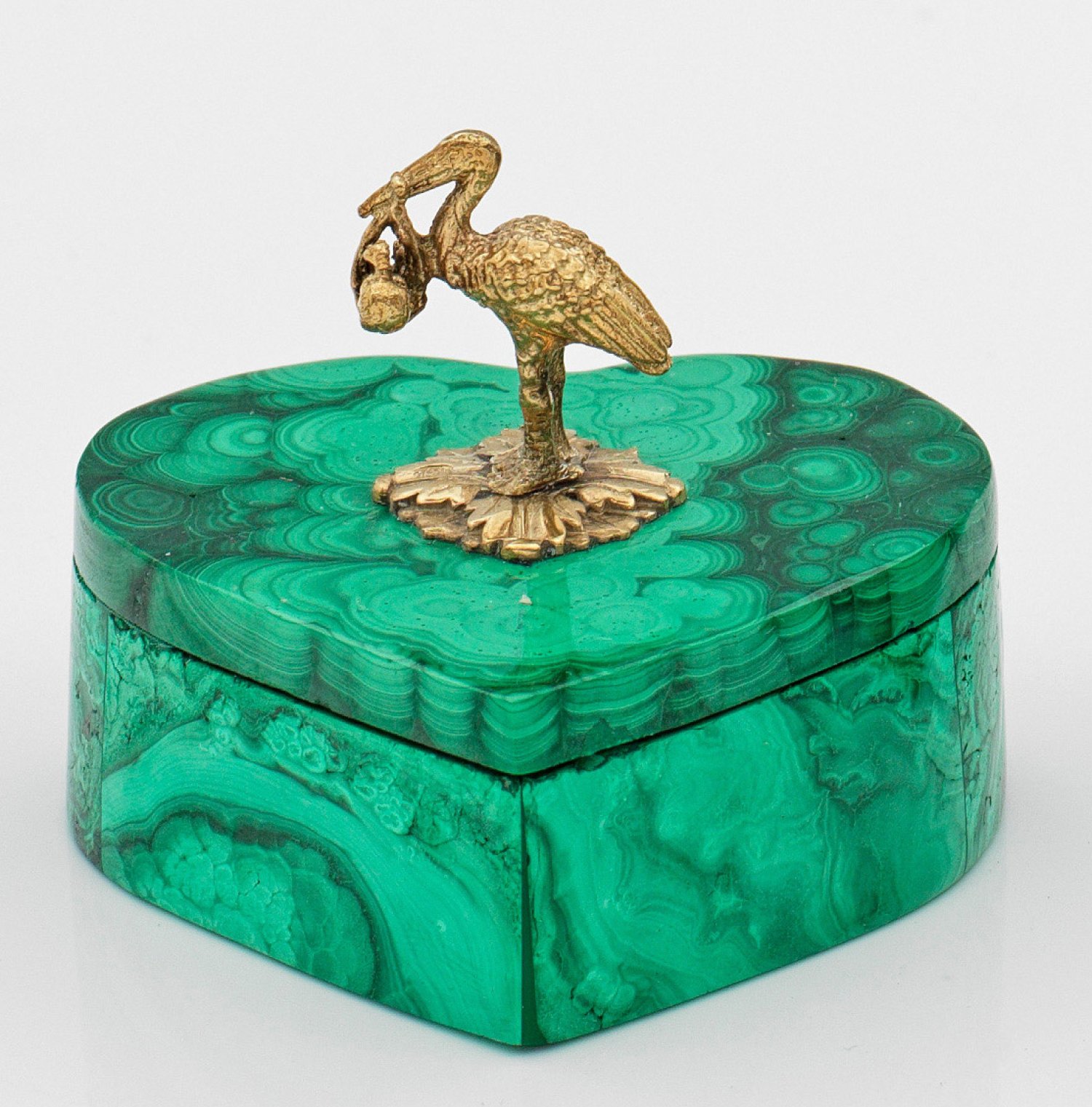 A small Russian malachite and gilt silver box. Standard mark 84.