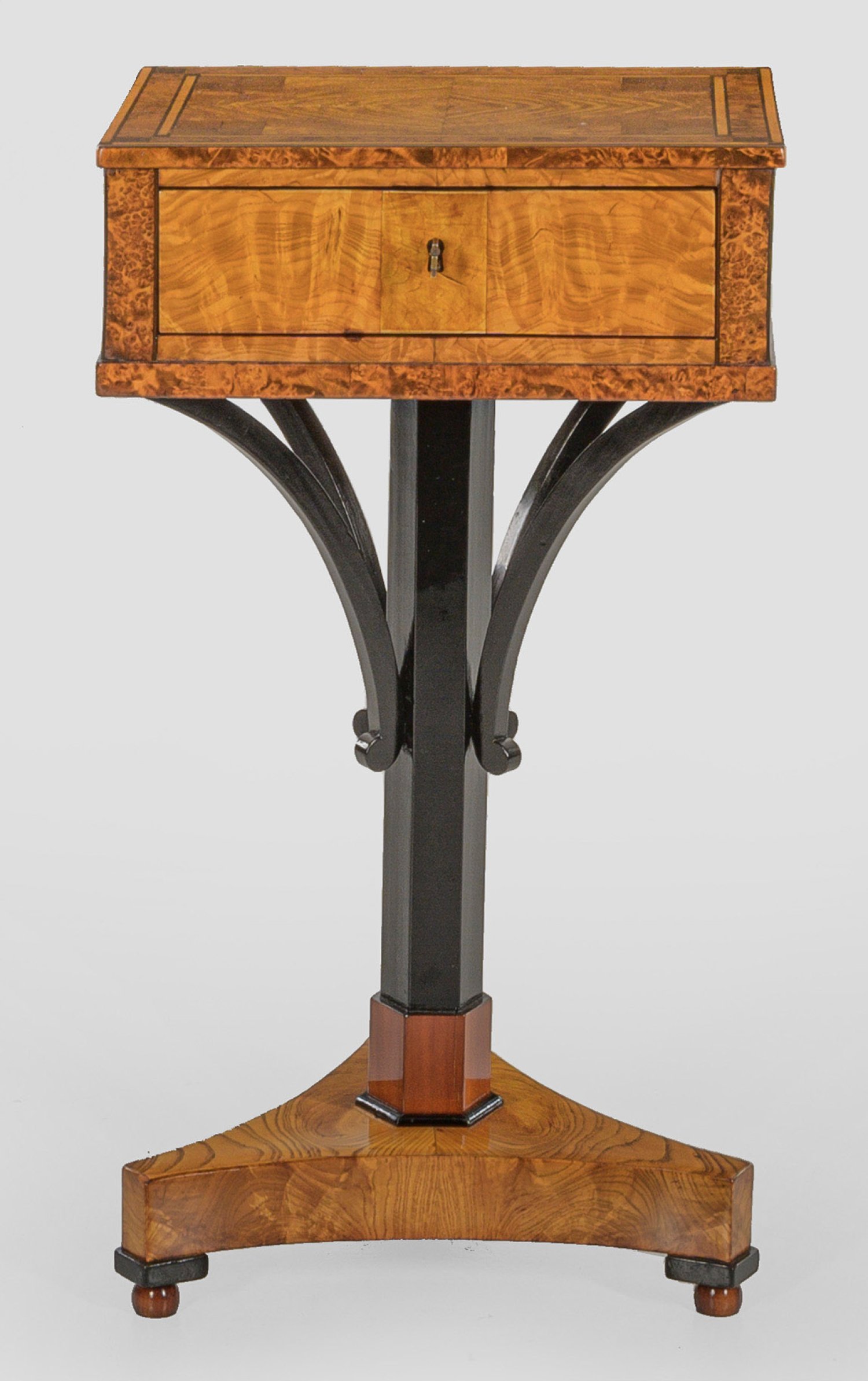 An Austrian ashwood veneered and partly ebonized Biedermeier sewing table.