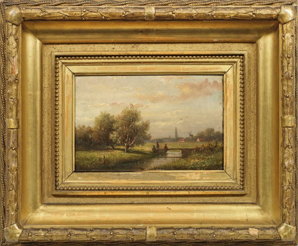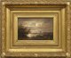 Fein gemalte, stimmungsvolle Landschaften mit Anglern vor der Silhouette von Rhenen bzw. einem Fischerboot auf einem Teich im Mondschein. In Stil und Motiv charakteristische Werke van Wisselinghs, der bei Andries Schelfhout lernte. 1838 und 1842 war er in Rhenen in der Provinz Utrecht tätig, bevor er 1848 in Utrecht selbst ansässig wurde. Öl/Eichentafel; je verso bez. (oder sign.) "v. Wisseling" sowie wohl mit ehemaligem Besitzvermerk "R. Walde". 12 cm x 18,5 cm. Rahmen.