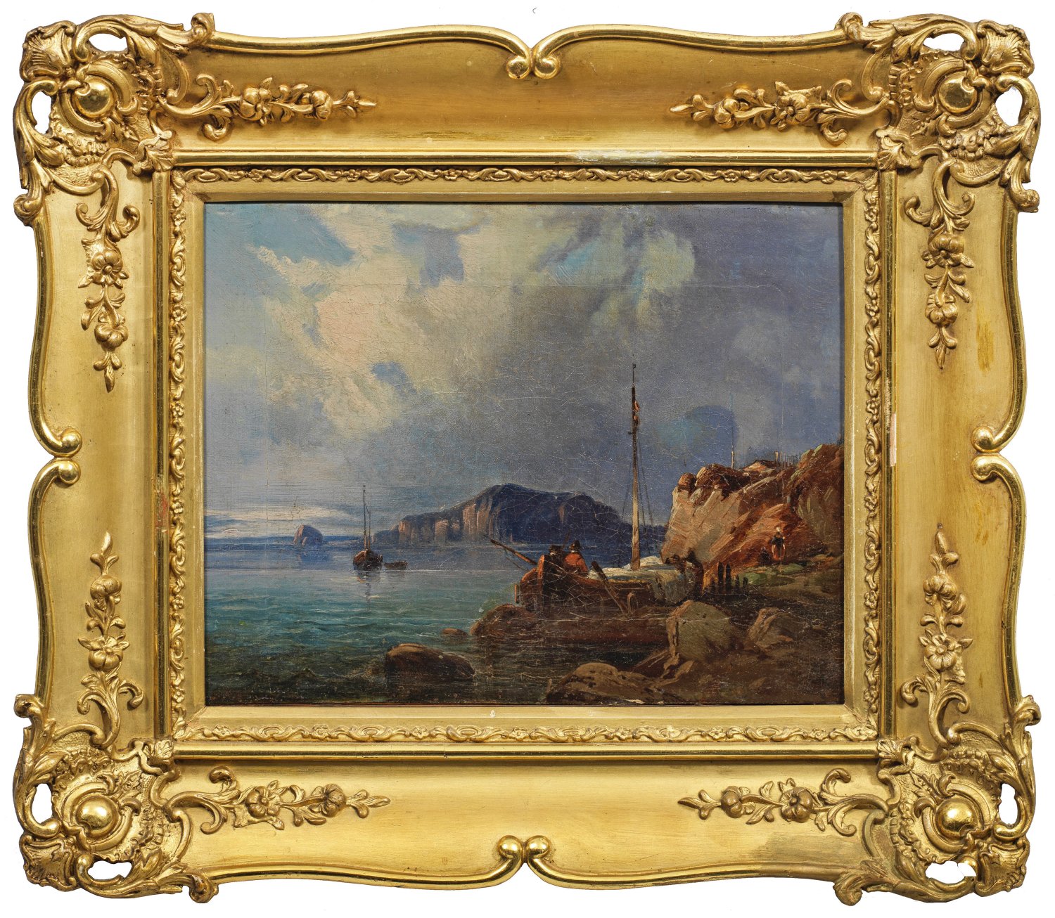 Atmosphärisches, fein gemaltes Marinestück des Hamburger Malers, der mit Christian Morgenstern zu den Pionieren des frühen malerischen Realismus in Hamburg gehörte. Öl/Lwd., kaschiert auf Keilrahmen; R. u. monogr. 20,5 cm x 28 cm. Rahmen.