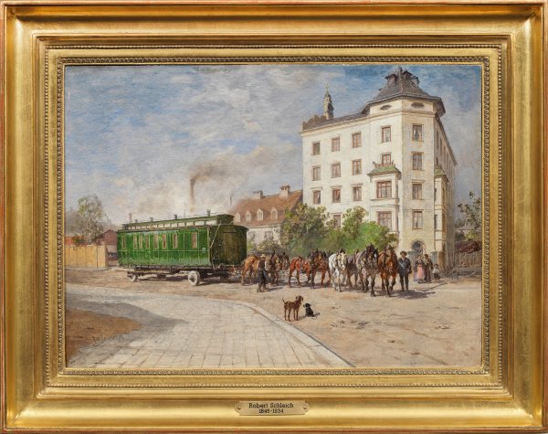 Mit feinen, zarten Strichen ausgeführte, historisch subtil wiedergegebene Ansicht des Münchner Malers, der bei Wilhelm von Diez studierte und Sohn des Jagdmalers und Kupferstechers Adrian Schleich (1812 - 1894) war. Er zählt zu den gesuchtesten Landschaftsmalern der Münchener Schule des 19. Jahrhunderts. Gemälde von ihm befinden sich in zahlreichen großen Sammlungen, u.a. der Neuen Pinakothek, München. Öl/Platte. L. u. sign.; 22,5 cm x 31 cm. Rahmen.