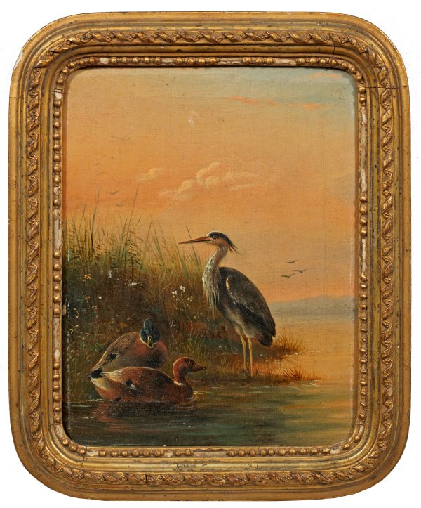 Stimmungsvolles, lebendig und detailreich geschildertes Tierbild. Knip, der bei seinem Vater Joseph August Knip lernte und in vielen Orten der Niederlande tätig war, wurde 1852 schließlich in Baden-Baden ansässig. Öl/Lwd.; Ca. 20 cm x 15,5 cm. Rahmen.