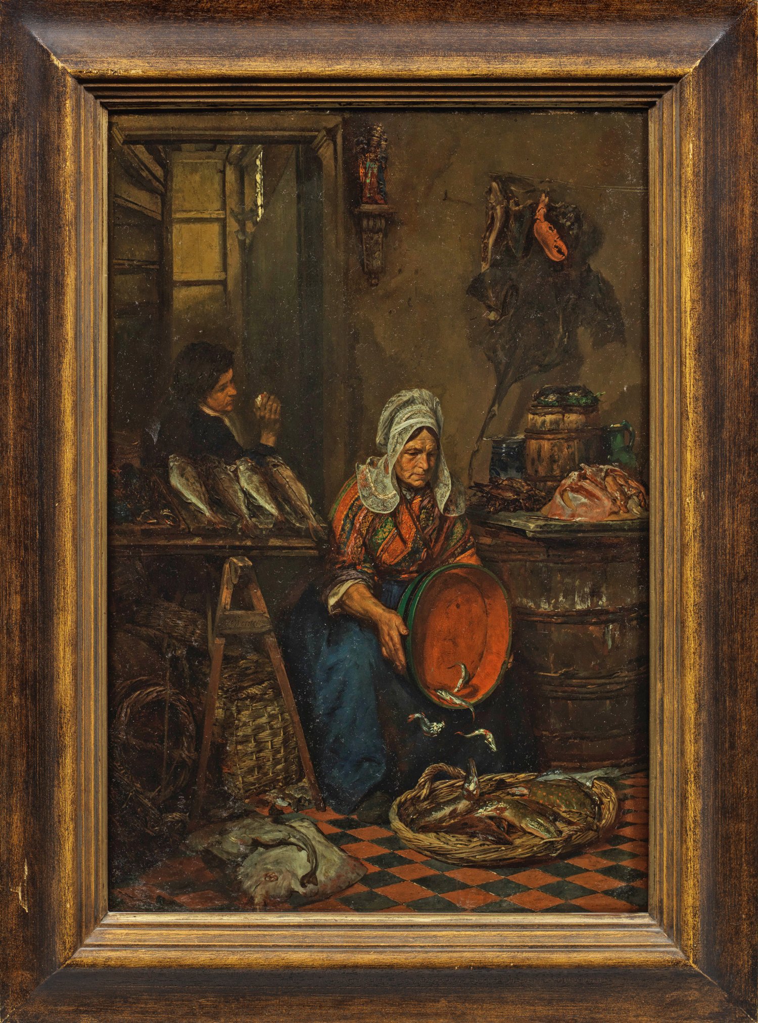 Oil on mahogany panel. Signed.