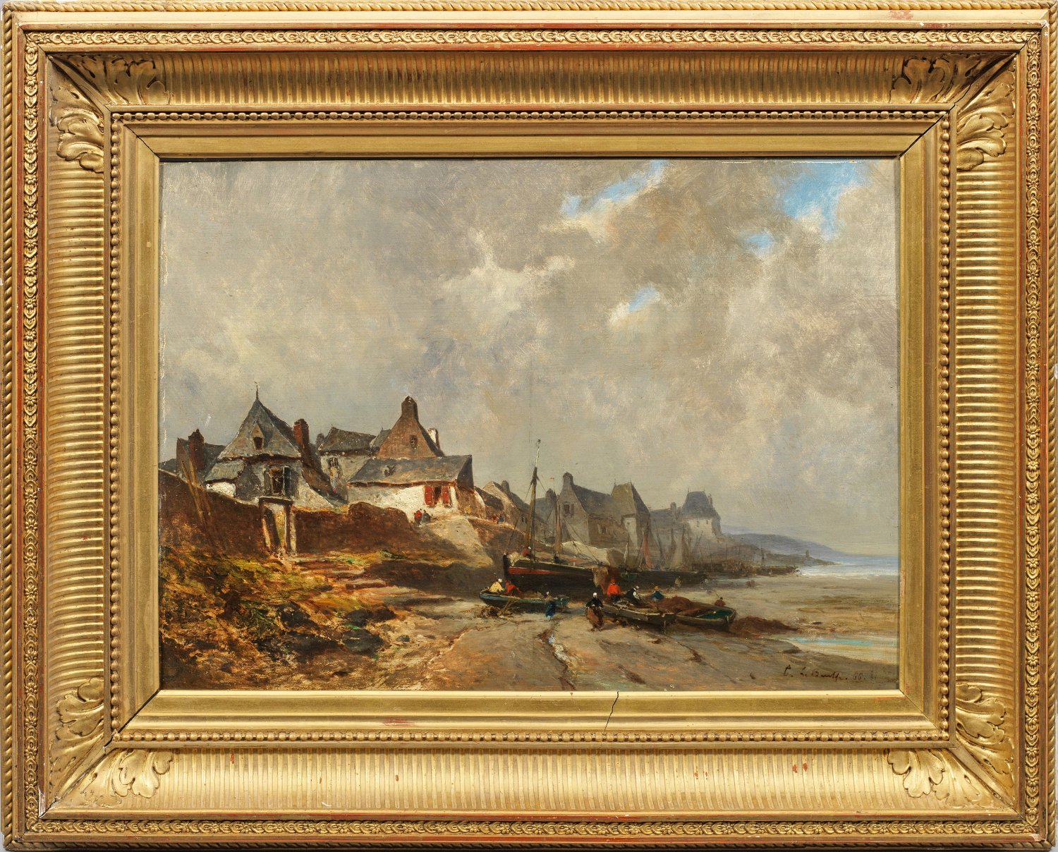 French landscape and marine painter. Oil on panel. Indistinctly signed and dated (18)66.