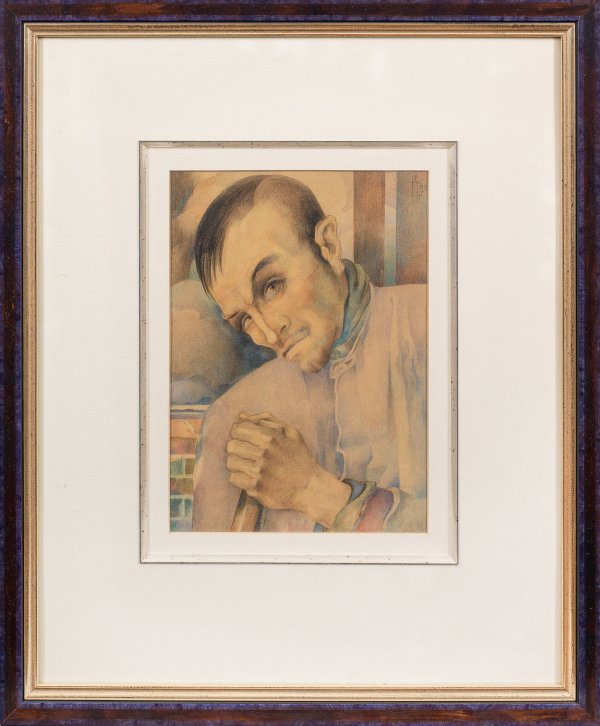 Durch seinen Verismus höchst eindrucksvolles, zwischen Expressionismus und Neuer Sachlichkeit stehendes Blatt, das Bezüge zu Werken von Künstlerkollegen wie Otto Dix, George Grosz und Georg Scholz zeigt. Marquardt, die bei Lovis Corinth in Berlin studierte, wurde schon vor dem I. Weltkrieg durch die Avantgarde und Künstler der "Sturm-Galerie inspiriert. Bilder und Keramiken der bedeutenden Malerin, die 1924/25 auch moderne Entwürfe für die Kieler Kunst-Keramik schuf, befinden sich heute u.a. im Britischen Museum in London. Aquarell über Bleistift/Papier. R. o. Ligatur-Monogramm mit Dat. (19)20, Verso Nachlass-Stempel. 36 cm x 26 cm (Passepartoutausschnitt). Rahmen.