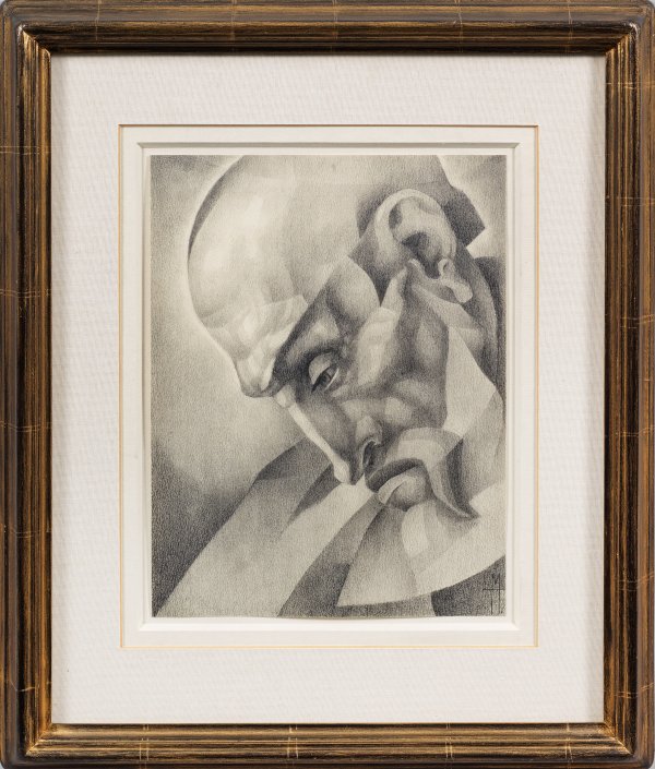 Expressionistisches Blatt Marquardts, die bei Corinth studierte und durch die Avantgarde der Berliner "Sturm-Galerie" inspiriert wurde. Bereits 1911 und 1913 stellte Marquardt in der Juryfreien Kunstschau in Berlin aus. 1924/25 schuf sie zusammen mit ihrer Lebenspartnerin Augusta "Gust" Kaiser (1895 - 1932) moderne Entwürfe für die neu gegründete Kieler Kunst-Keramik. Keramiken und Zeichnungen Marquardts befinden sich u. a. im Britischen Museum in London. Bleistift/Papier. R. u. Ligatur-Monogramm. 31 cm x 24 cm. Rahmen.