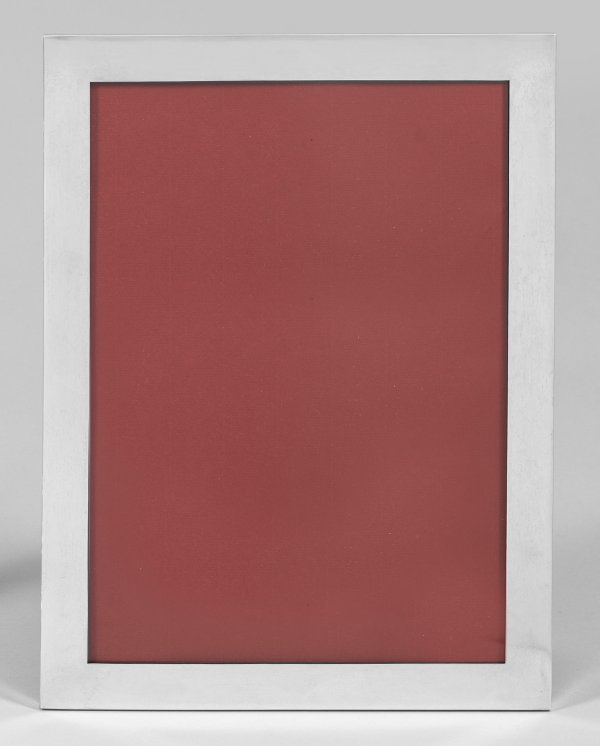 Sterlingsilber. Hochrechteckig. Breite, glatte Rahmung. Rückwand aus ebonisiertem Holz, aufstellbar. Gest. Beschaumarken, Herstellerzeichen, Händlermarke "Kirby Beard & Co, Paris", Jahresbuchstabe "D". H. 34 cm - 25,5 cm. Bildausschnitt: 29 cm x 21 cm