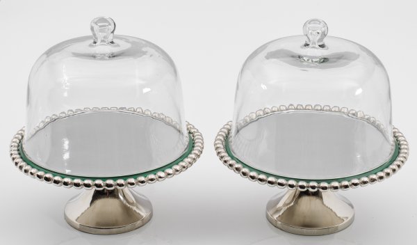 Lot 2301: Paar Kuchenplatten mit Glasglocken
