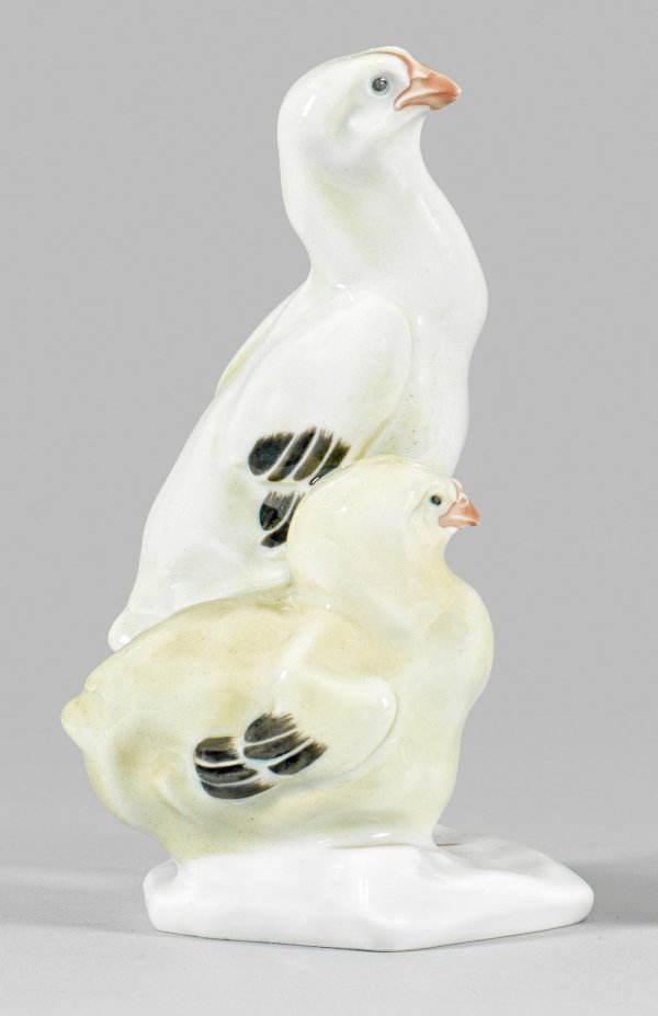 Lot 412: Jugendstil-Tiergruppe "Junge Brahmahühner"