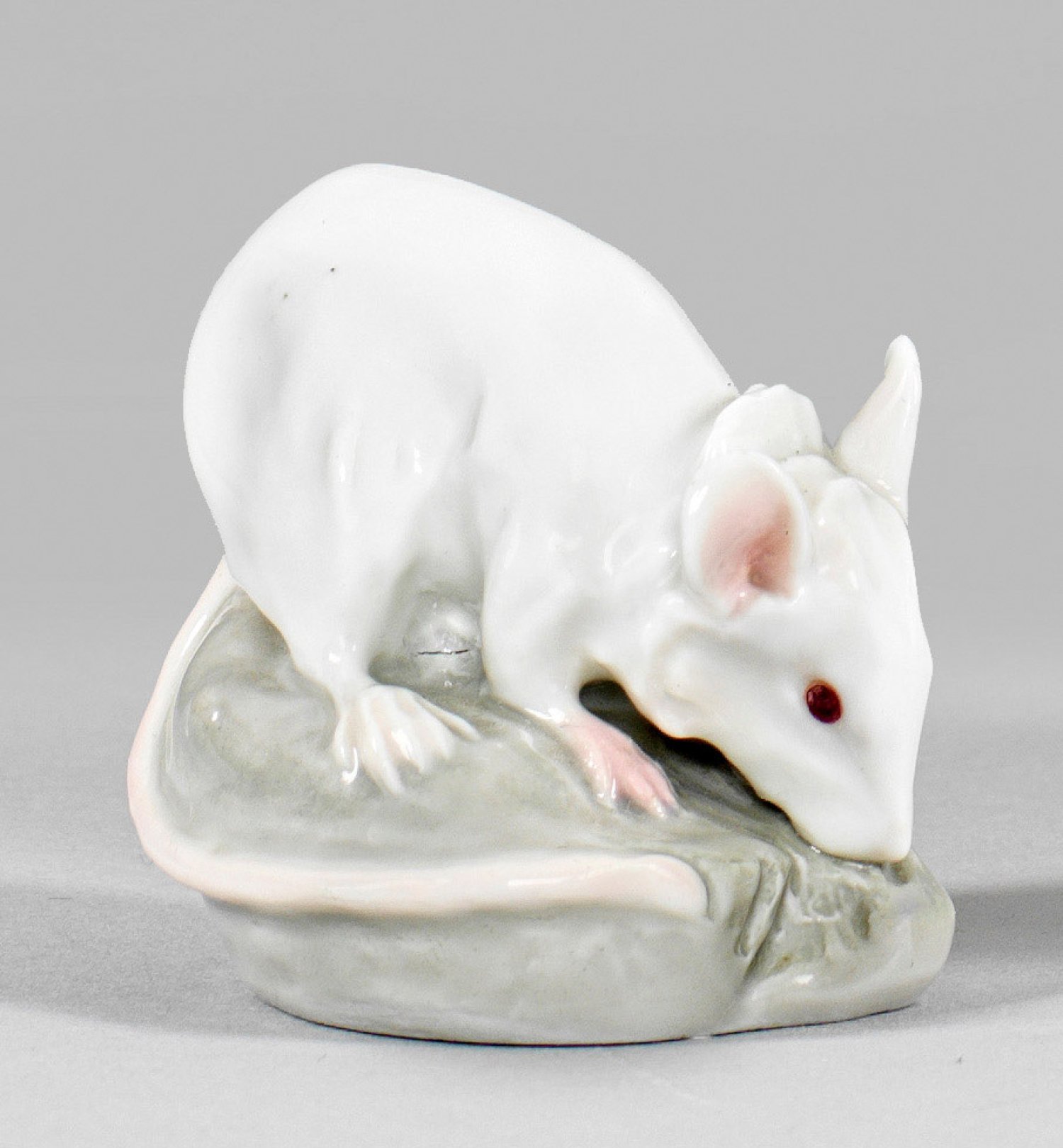 An Art Nouveau porcelain figure of a mouse. Crossed swords mark.