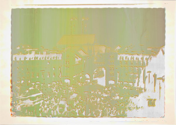 Farbserigraphie/dünner Karton von Schoellershammer (mit dem Blindstempel), 1971. Sign. u. dat. (19)71. Aus einer Auflage von 115 sign. und dat. Abzügen als Unikate bzw. mit Unikatcharakter (jedes Blatt wurde in verschiedenen Farben gedruckt, wodurch es als Unikat anzusehen ist). Erschienen in der Edition Dieter Roth, Düsseldorf; Druck durch Hartmut Kaminski, Düsseldorf. Wvz. Dobke 159. Darstellung ca. 63,5 cm x 89 cm; Blatt 72 cm x 101 cm.