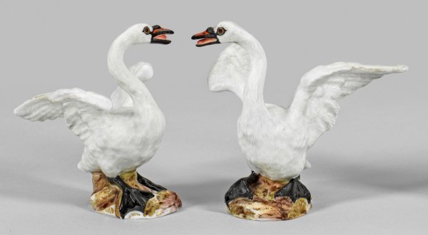 Lot 735: Paar Schwanenfiguren als Gegenstücke