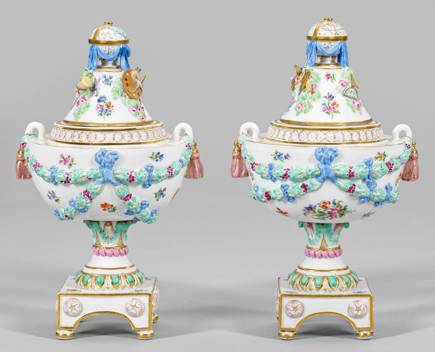 Lot 827: Paar Meissen Deckelvasen als Tafeldekoration